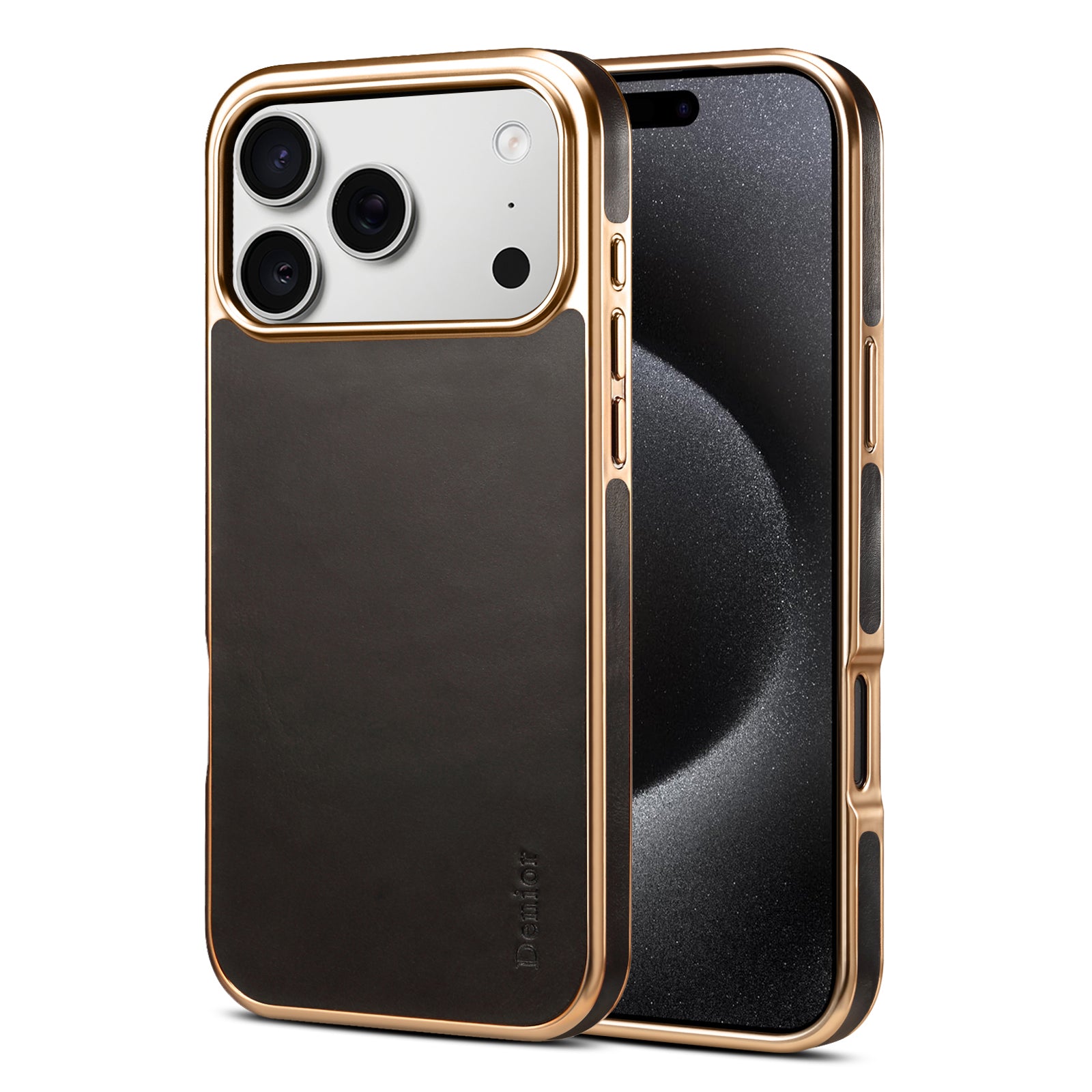 • Premium leather back with a metal frame delivers a refined look, secure grip, and durable protection for daily use.