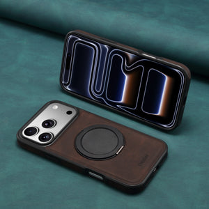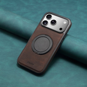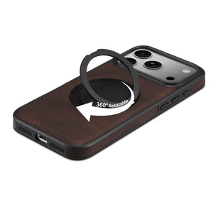 Vintage leather texture, premium feel. Built-in magnetic ring, doubles as stand. Full protection, shockproof & durable. Precise cutouts, snug fit. Magnetic for car use, travel-friendly.