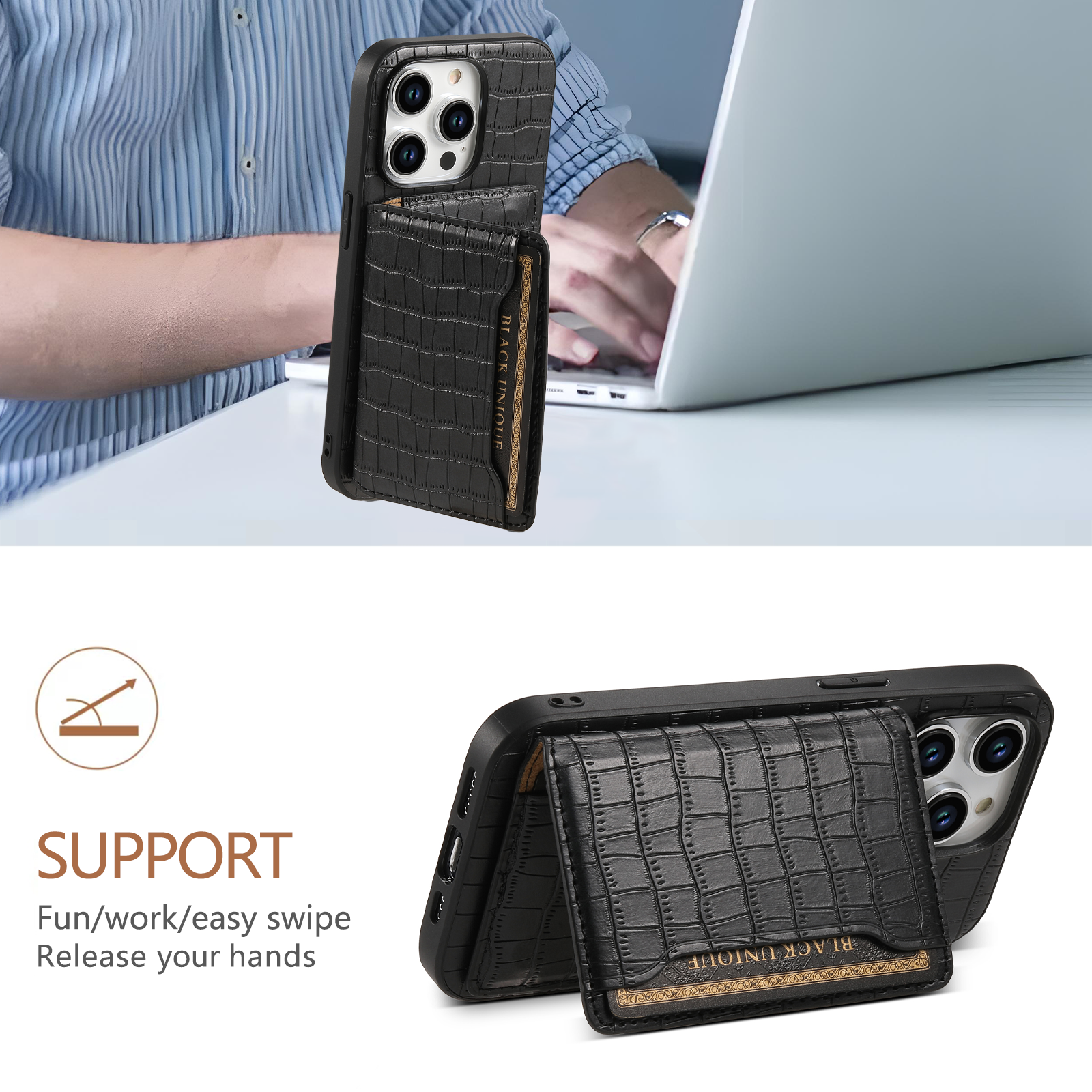 • Secure card slots to keep your essentials organized.