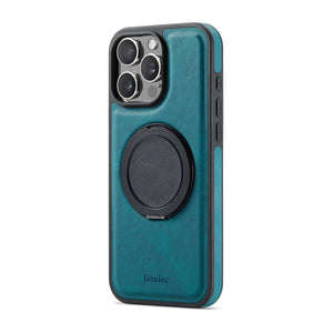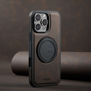Made from premium leather, this MagSafe iPhone case integrates a foldable stand, enhanced drop protection, secure magnetic alignment, refined grip comfort, and a slim, professional silhouette.