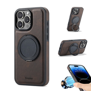 • Vintage brown leather texture with magnetic ring stand, supports horizontal/vertical use. All-around anti-drop, precise fit for lens & buttons. Brand embossed logo, minimalist premium style, fits iPhone, ideal for business & daily.