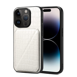 • Sleek crocodile-embossed leather with a built-in card holder for on-the-go convenience.