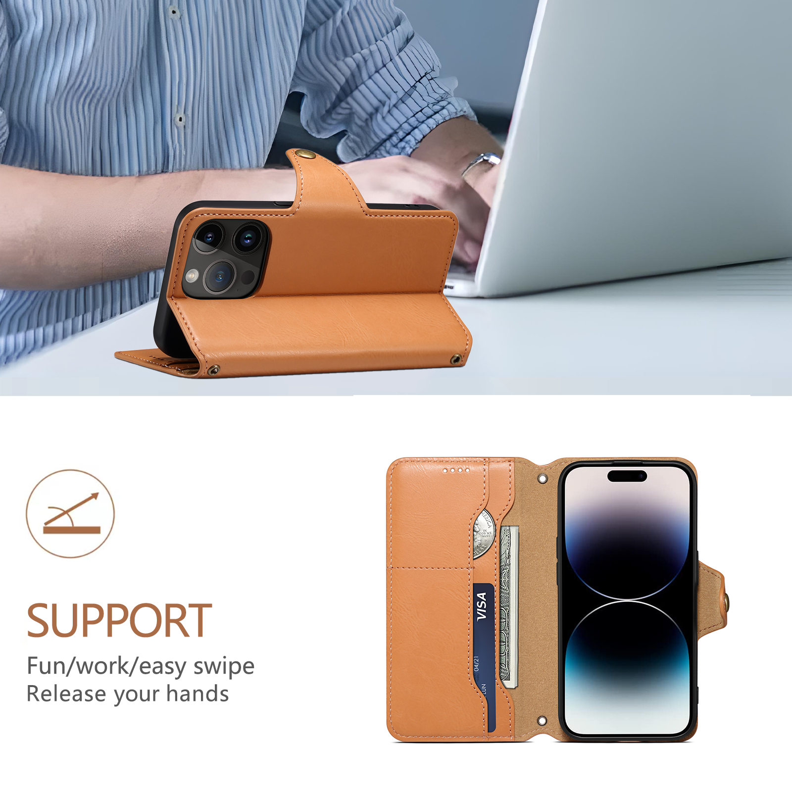 Foldable Leather Wallet iPhone Case – Flip Cover Protection (Khaki) | PE260055