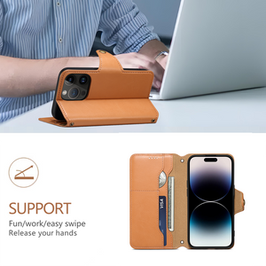 Foldable Leather Wallet iPhone Case – Flip Cover Protection (Khaki) | PE260055