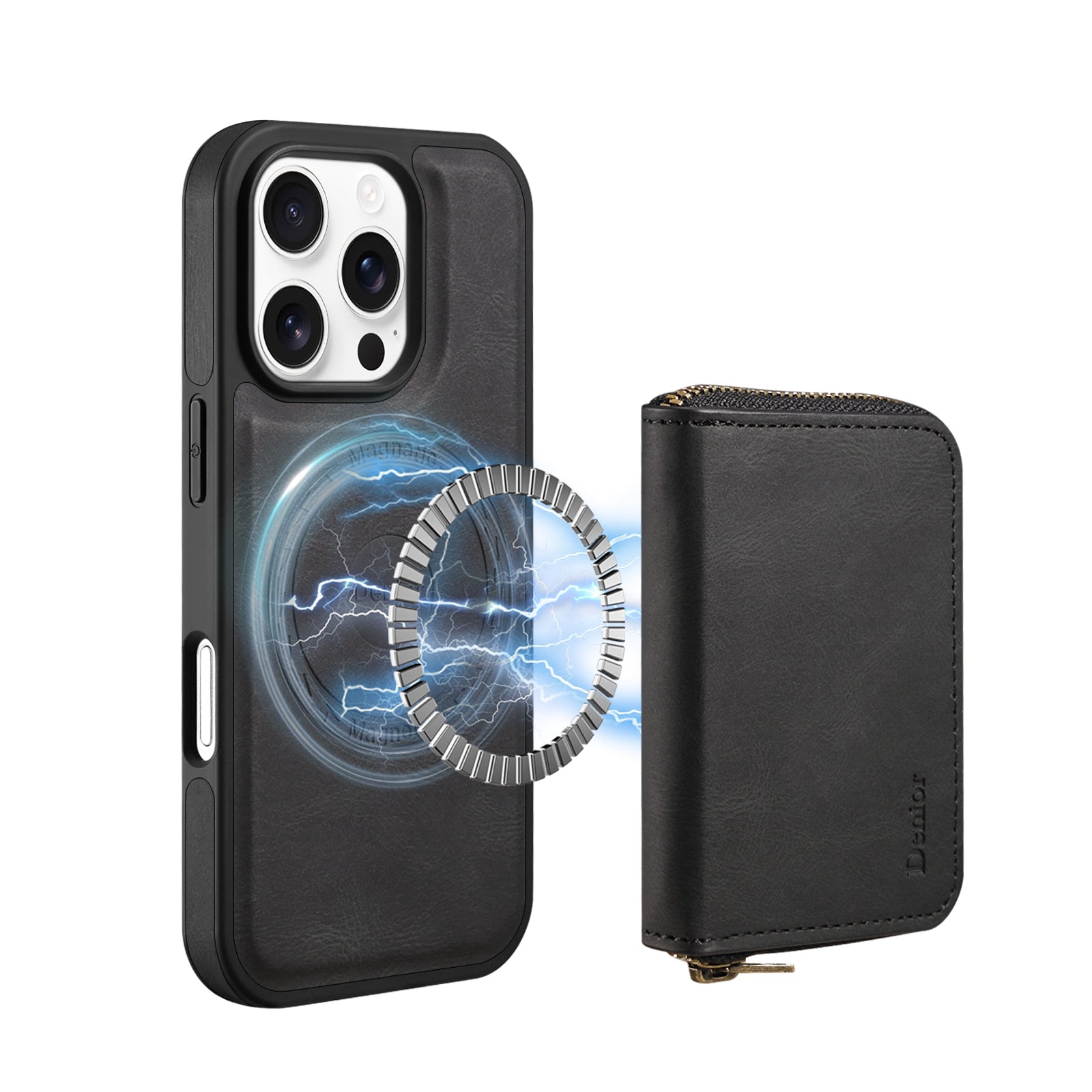 MagSafe Magnetic Wallet Leather iPhone Case –Sleek Design (Black) | PE260075