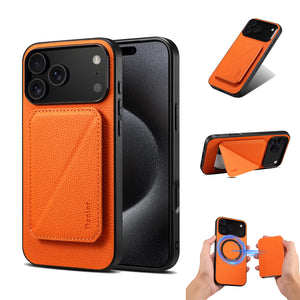 Home iPhone Cases MagSafe Hidden Card Slot Leather iPhone Case –Durable Protective Cover (Orange) | PE260076