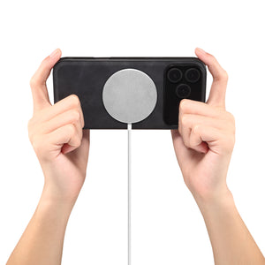 Magnetic wireless charging design, usable while charging. Matte leather with soft grip, full-frame shockproof, raised camera lip, convenient charging & solid protection.